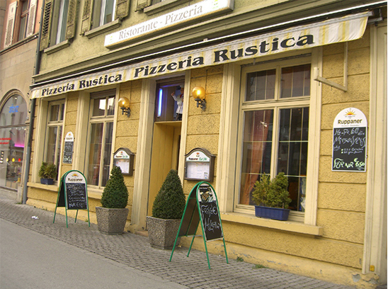 Du gehst mit einer Freundin spazieren, als du an einer sehr nett aussehenden Pizzeria vorbeikommst. Deine Freundin sagt, dass sie dort schon einmal gegessen hat und dass die Pizzen ausgezeichnet waren. Du hast bereits einen guten Eindruck von der Pizzeria, also beschließt du, sie auszuprobieren.